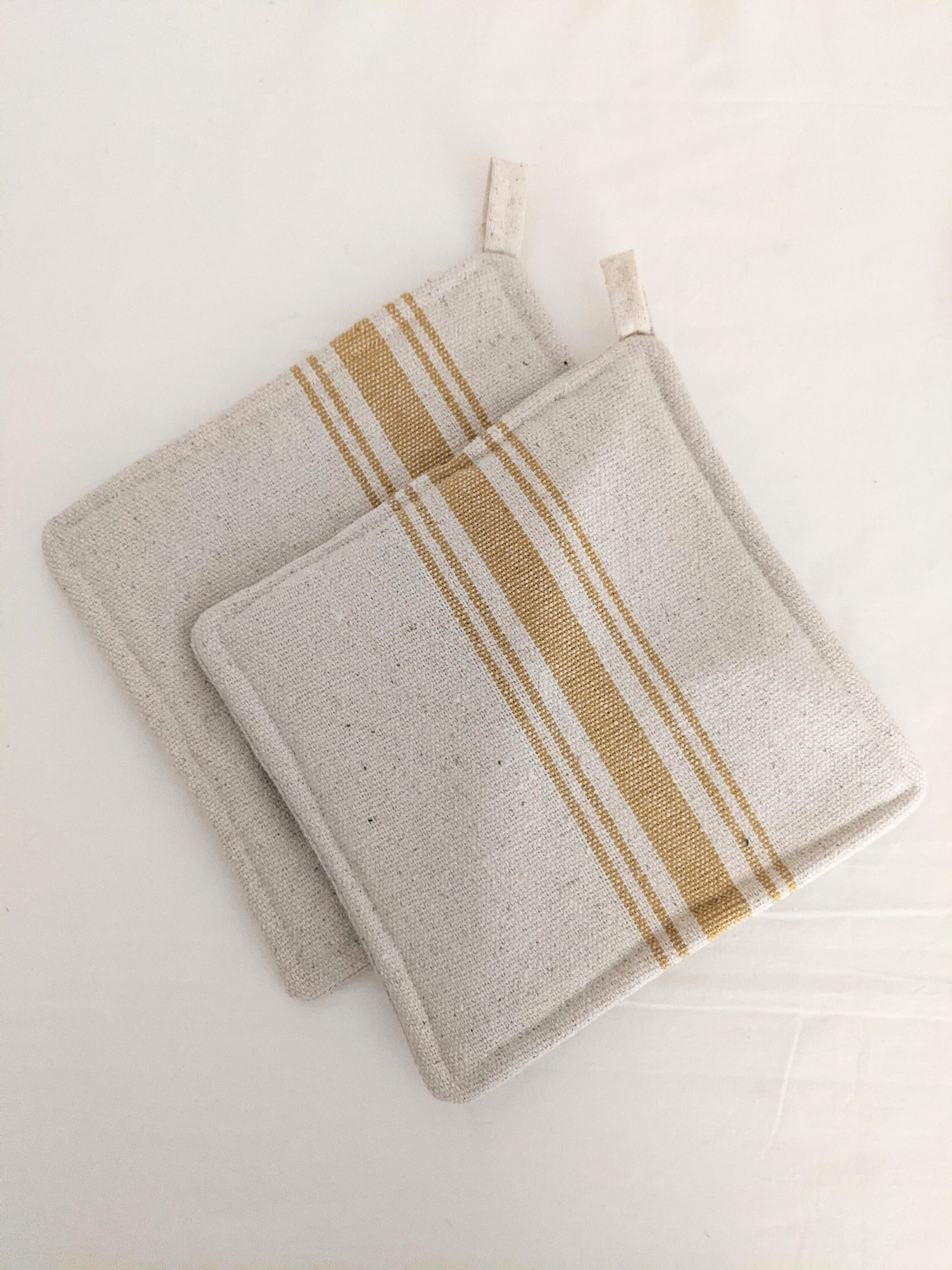 Gold Feedsack Potholder, Set of 2, Grainsack