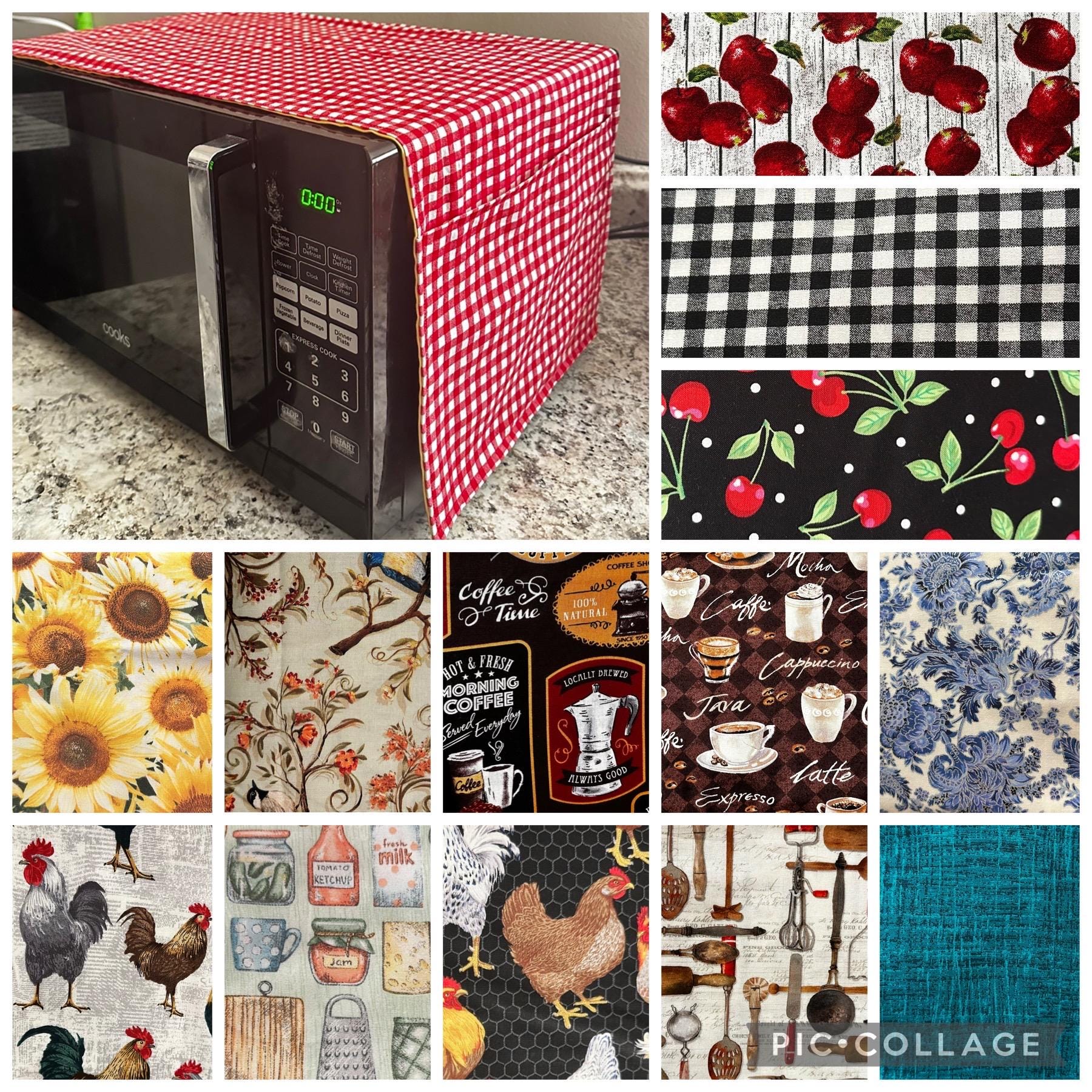 Layered cover made with high quality cotton broadcloth fabric, fill, and lining. All seams finished. Please measure your microwave and select length desired. Measures approximately 12” deep. We can custom make to your length and width if necessary, please message us before purchasing so we can quote you a custom price.